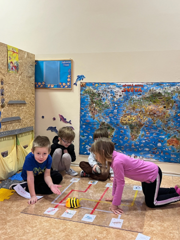 Na začátku měsíce jsme se věnovali tématu Tří králů. Děti si povídaly o jejich putování, o hvězdě, která jim ukazovala cestu, i o darech, které nesli. V centrech aktivit vznikaly královské koruny, hvězdy a dary, děti stavěly Betlém a cestu pro Tři krále, hrály si divadélko a zkoušely si putování podle jednoduché mapy. Na interaktivní tabuli skládaly příběh a pracovaly s obrázky k této tradici.