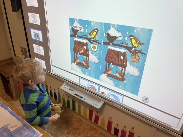 V druhé polovině měsíce jsme se zaměřili na téma ptáčků a zvířátek v zimě. Děti se seznamovaly s tím, jak ptáci a zvířata v zimě žijí, čím se živí a jak jim můžeme pomáhat. Povídali jsme si o krmítkách, jejich podobách a materiálech, počítali ptáčky a umisťovali je podle pokynů. V centrech aktivit děti tvořily zimní zahradu s ptáčky, pracovaly s QR kódy a videi o ptactvu, třídily ptáčky podle barev, stavěly krmítka z kostek a hrály si se semínky.