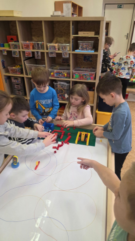 Nejprve jsme se věnovali tématu povolání. Děti se seznamovaly s různými profesemi, povídali jsme si o tom, čím by chtěly být, až vyrostou, a zkoušely si některá povolání i prakticky formou her. Nechyběly kostýmy, tematické hry na lékaře, kuchaře nebo hasiče, a také kreslení obrázků inspirovaných jednotlivými profesemi.