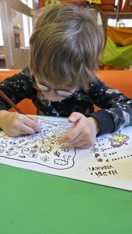 V průběhu měsíce jsme se zapojili také do velikonoční výzdoby obce. Děti barvily velikonoční vajíčka, která jsme následně společně zavěsili na velikonoční břízku u obchodu COOP. Tato aktivita proběhla ve spolupráci s panem starostou a děti měly radost, že se mohly podílet na výzdobě veřejného prostoru.