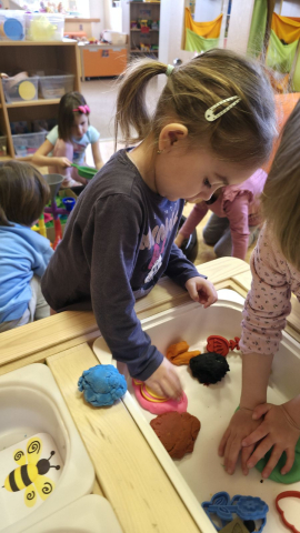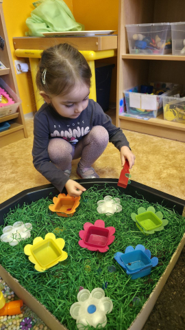 V další části měsíce jsme se zaměřili na jaro. Povídali jsme si o změnách v přírodě, o počasí i o tom, co se na jaře děje. V „Písečné pláži“ si děti hrály na malé zahradníky – pracovaly s hlínou, sázely do květináčů, využívaly umělé květiny i modely hmyzu. Tvořily, zkoušely, přesýpaly, modelovaly z modelíny a objevovaly jarní témata pomocí smyslových her.
